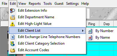 - Go to “Edit” in the top menu, select “Edit Client List” – Choose By Name or By Number